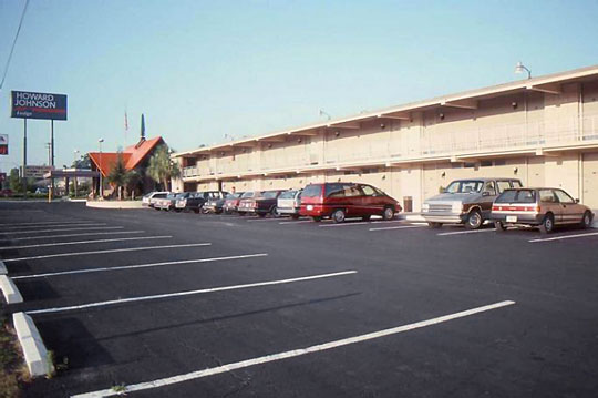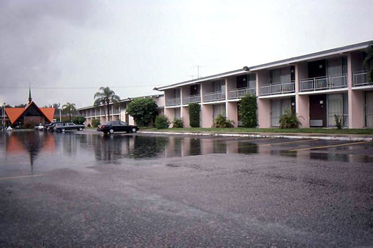 Bob: "The place was still very nice; had an upper floor balcony room along interstate. That's my gold Honda Civic parked on the right."