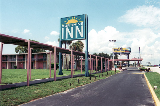 Below: After losing its HJ status, the eye-catching Orange Roof facade of the Gate Lodge was demolished leaving a small flat-roofed lobby for the Sunshine Inn.