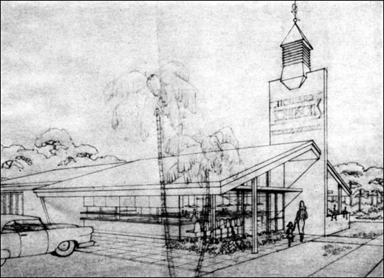 Almost by chance the 20th century modernist architect Rufus Nims became involved creating designs for the Howard Johnson Company. His most famous building became known in Company lore as the series '77,' and to HoJo's fans is what this site calls the Nims-Type. That familiar Restaurant building itself served to redefine and refocus Howard Johnson's image in the 1950s as ultimately modern.